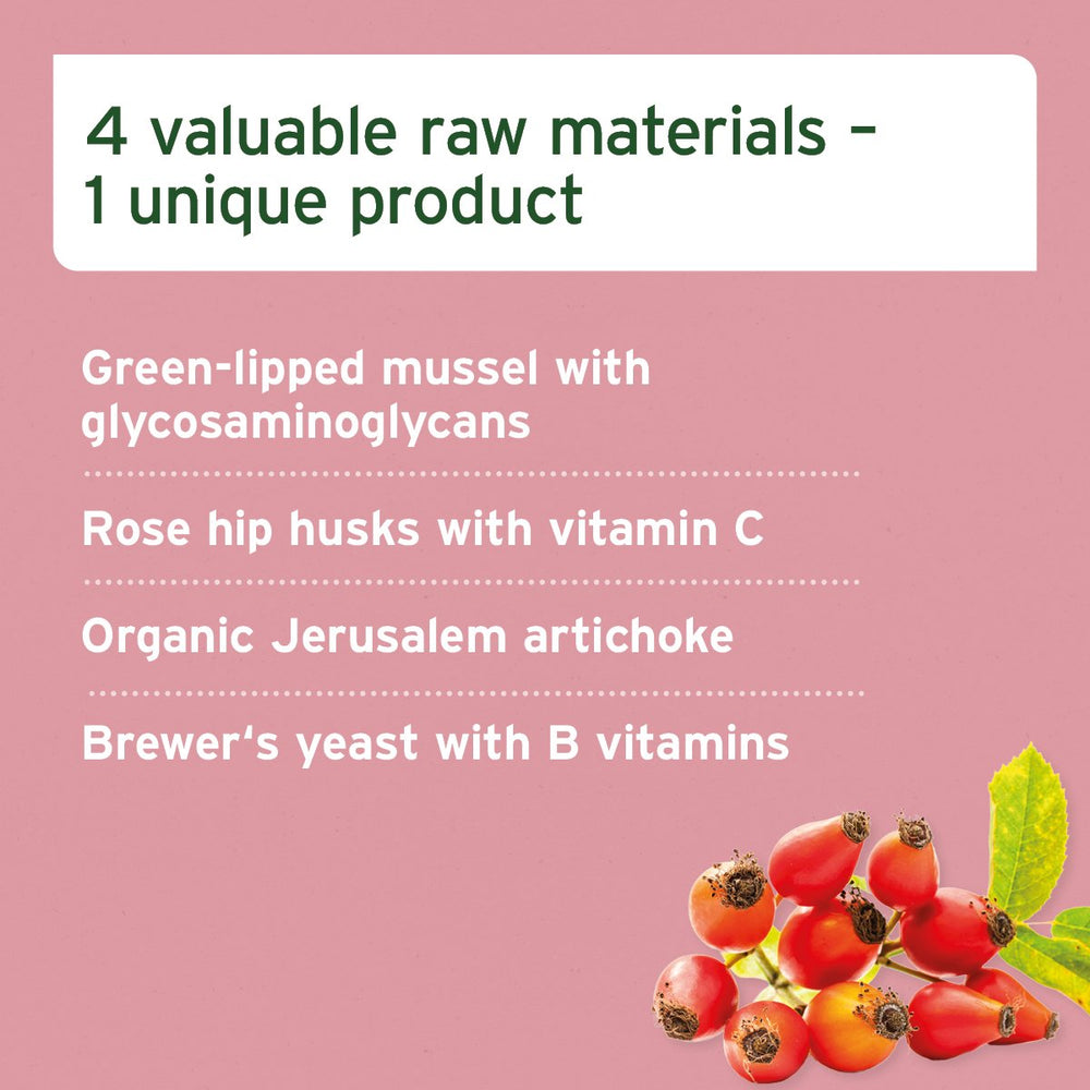 4in1 Complete for Dogs is a complementary feed for dogs made from a unique blend of pure Brewer's Yeast, Rosehip, Green-Lipped Mussel, and Jerusalem Artichoke. These four high-quality raw ingredients can help support your dog’s joints, coat and skin, stomach and intestine, and immune system. Save time, money and the planet by getting these essential supplements in one product.